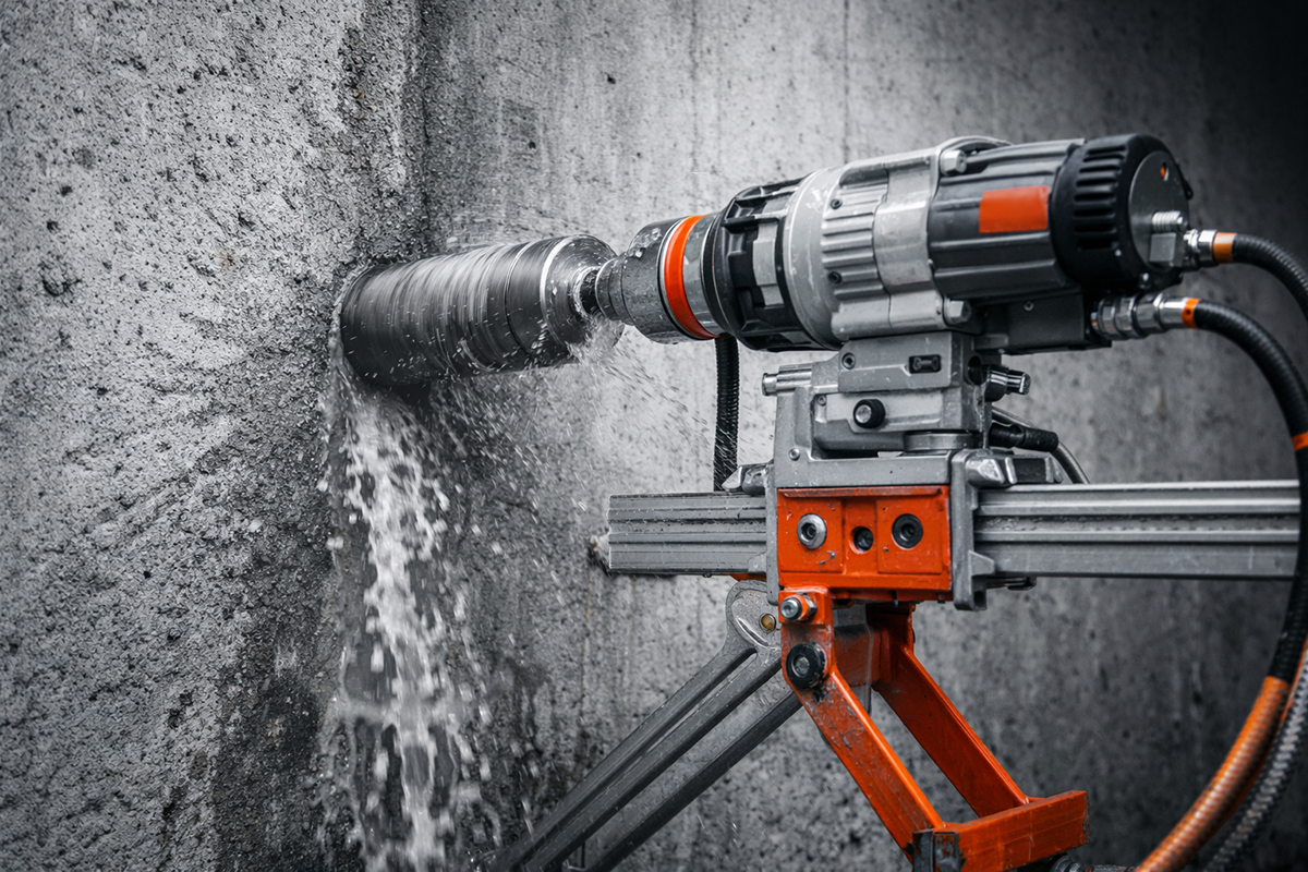 Präzise Diamantkernbohrungen in Beton, Stahlbeton und Mauerwerk für Installationen, Leitungen und technische Durchführungen.